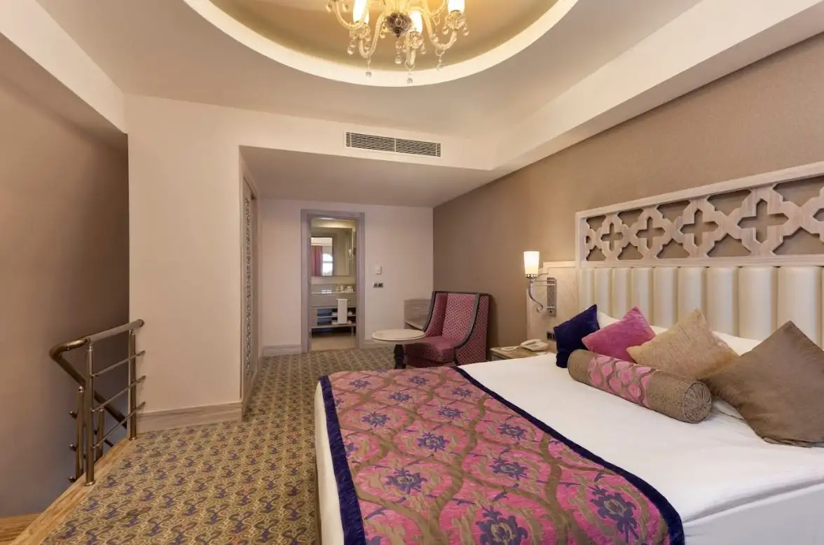 King Suite:İki katlıdır. İki yatak odası ve bir oturma odasından oluşur. Her iki odada duş ve WC, alt kat yatak odasında jakuzi vardır. Minimum kapasite 2 ve maksimum kapasite 4 kişidir. Oda zemini birinci katta parke ve fayans, ikinci katta halı kaplıdır.