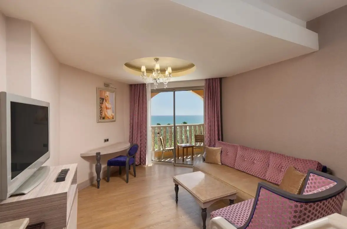 Junior Suite:1 yatak odası ve 1 oturma odasından oluşmaktadır. Her iki odada da duş ve WC,yatak odasında jakuzi vardır. Minimum kapasite 2 maksimum kapasite 2+1 kişidir.Deniz manzaralıdır. Oda zemini parke kaplıdır.