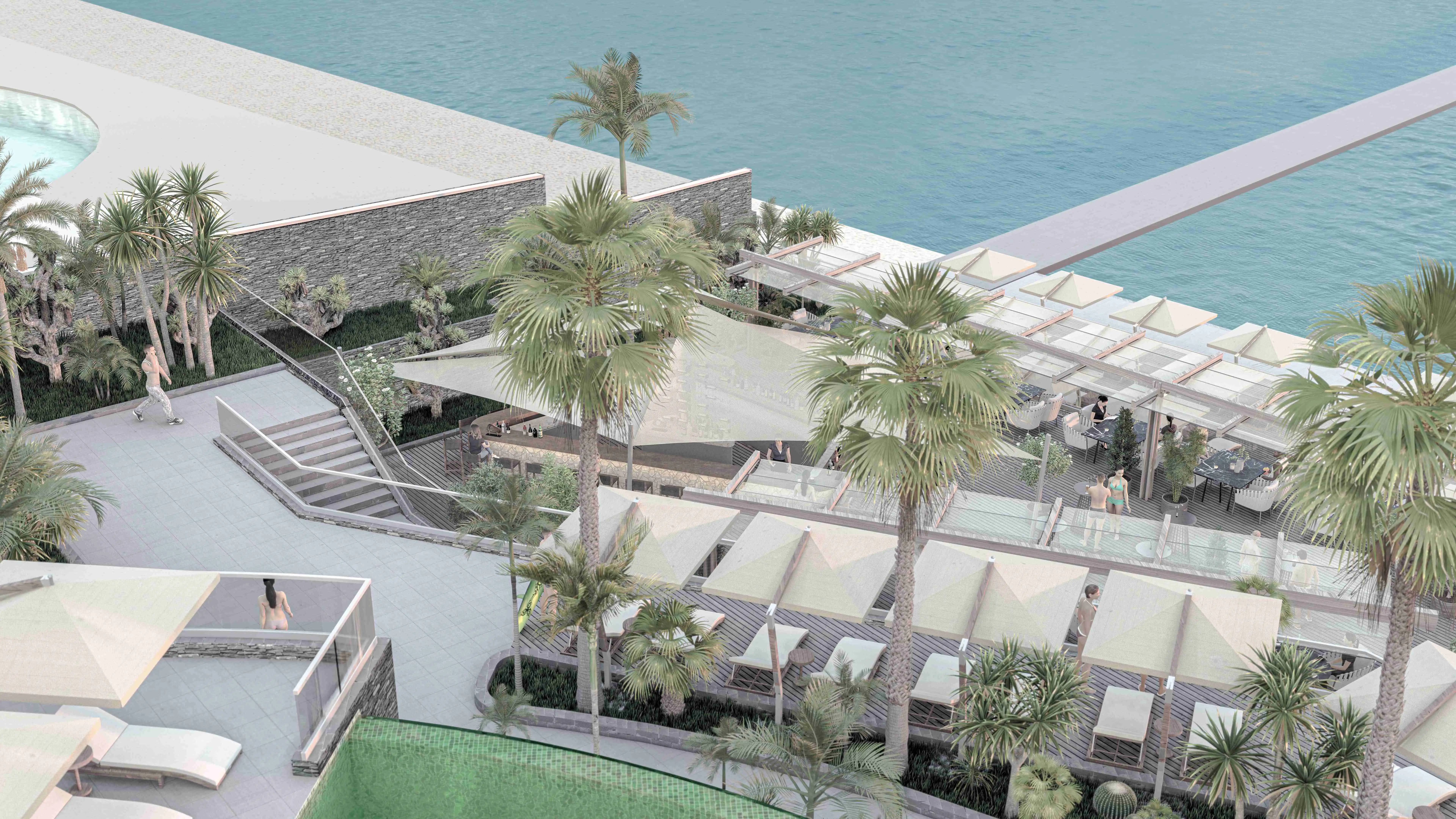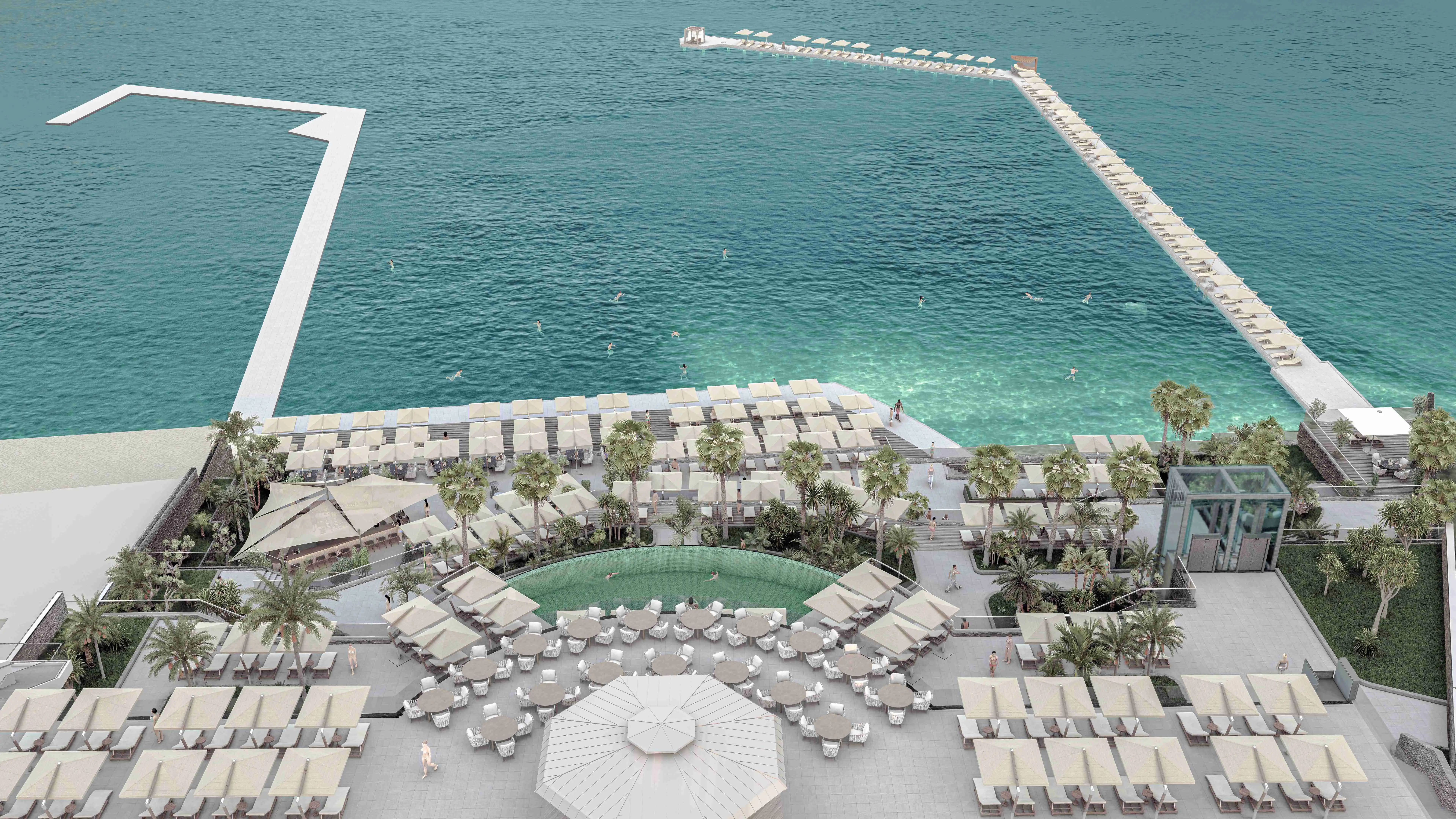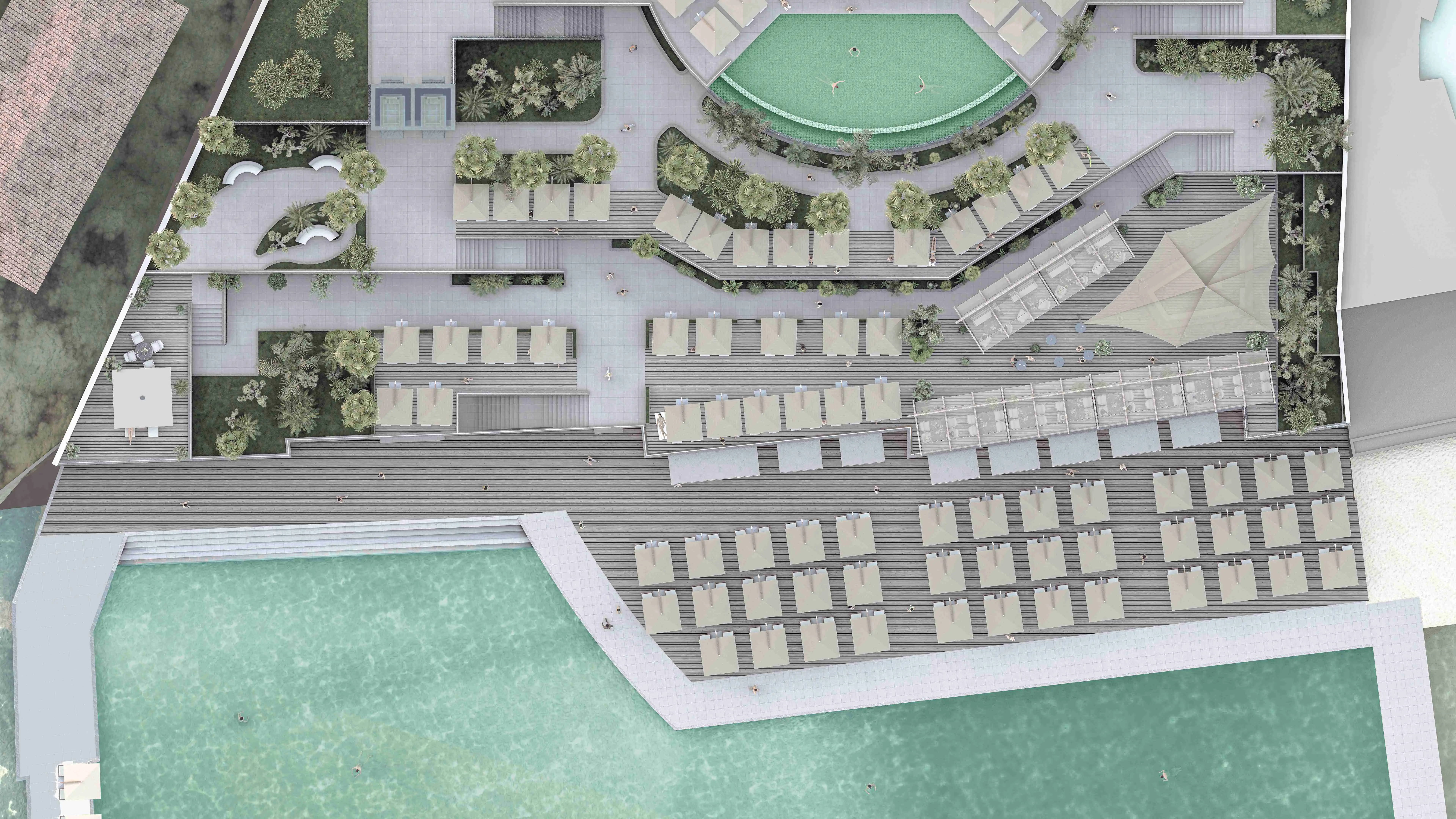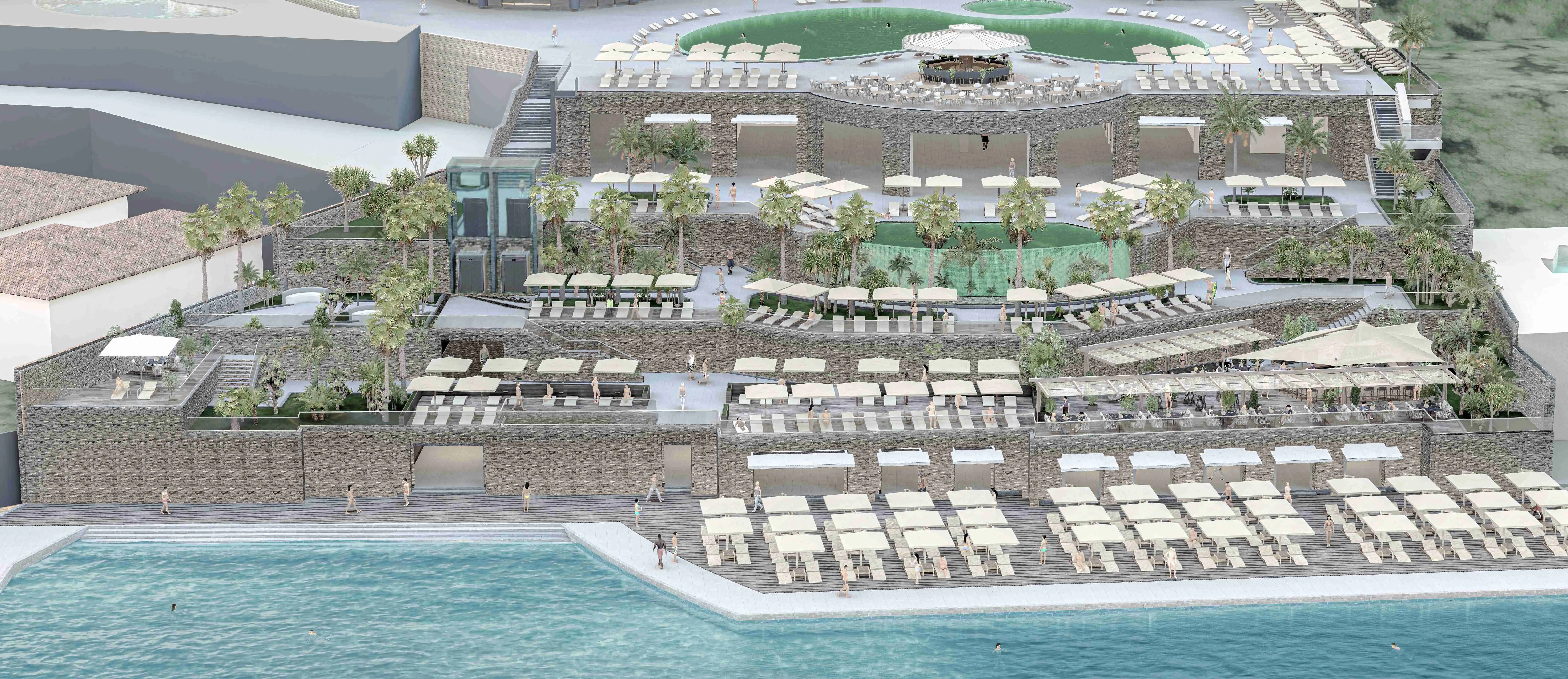 denizle iç içe bir tatil imkanı sunan tesiste, plaj ve havuz alanları gün