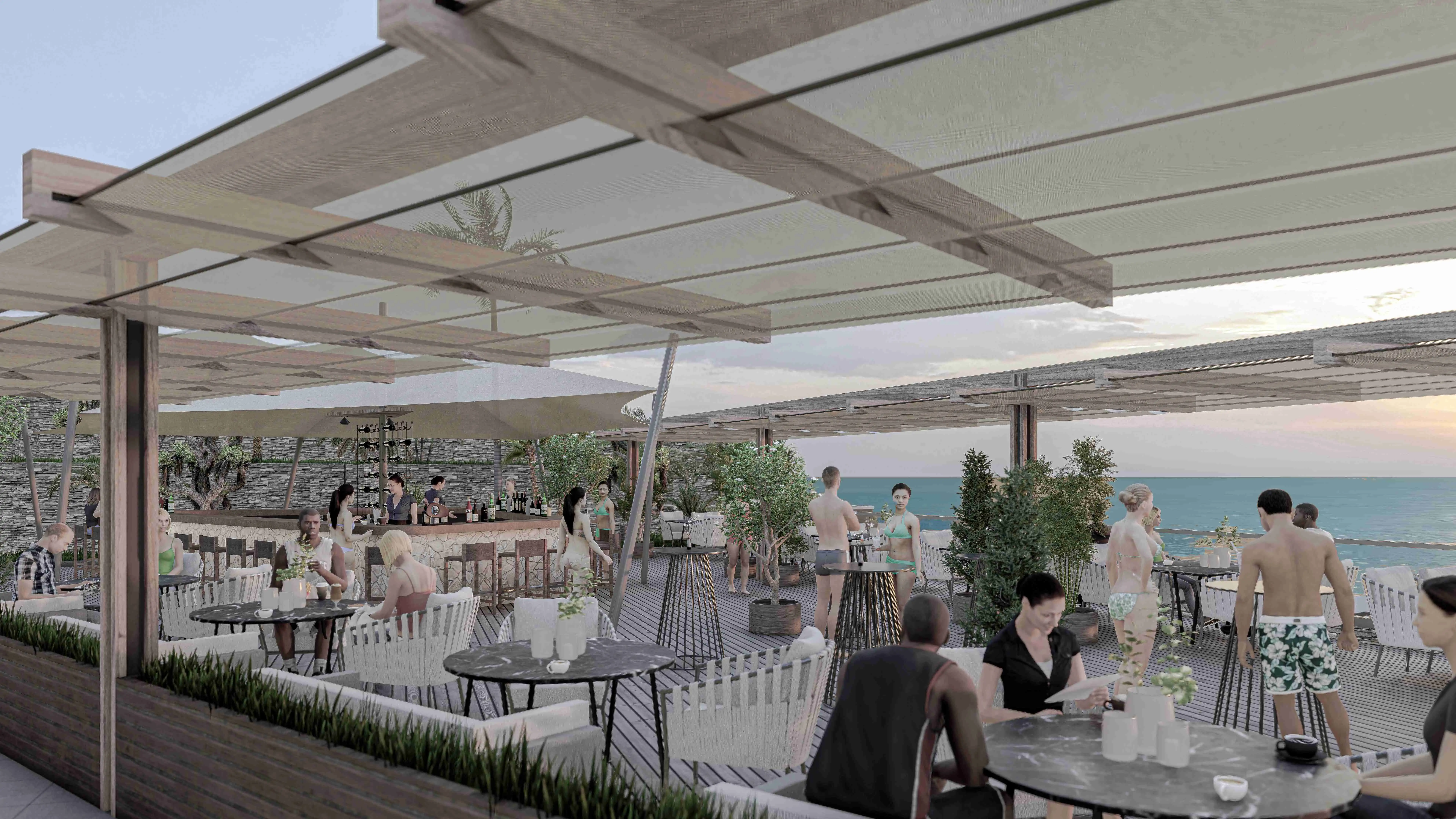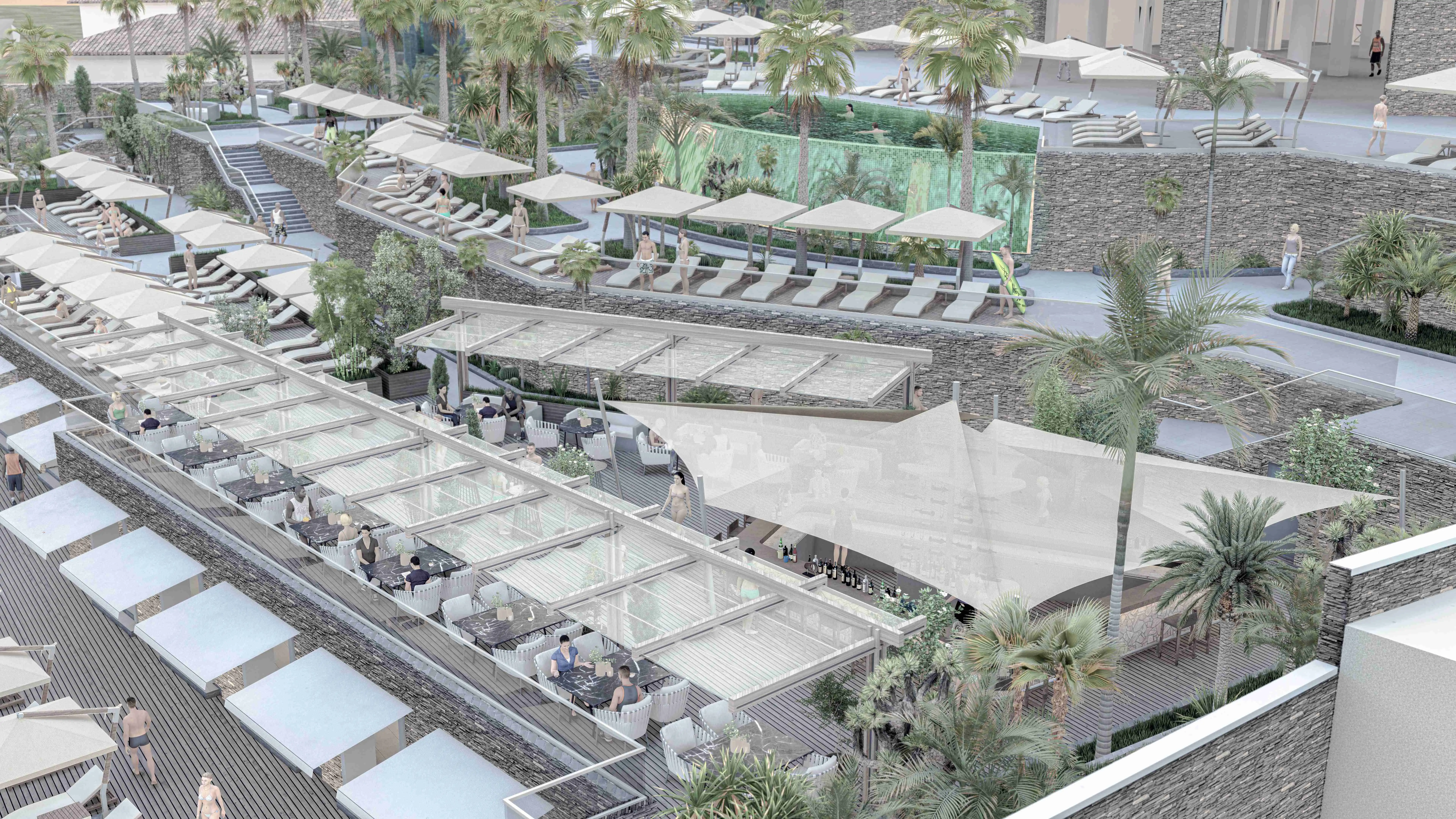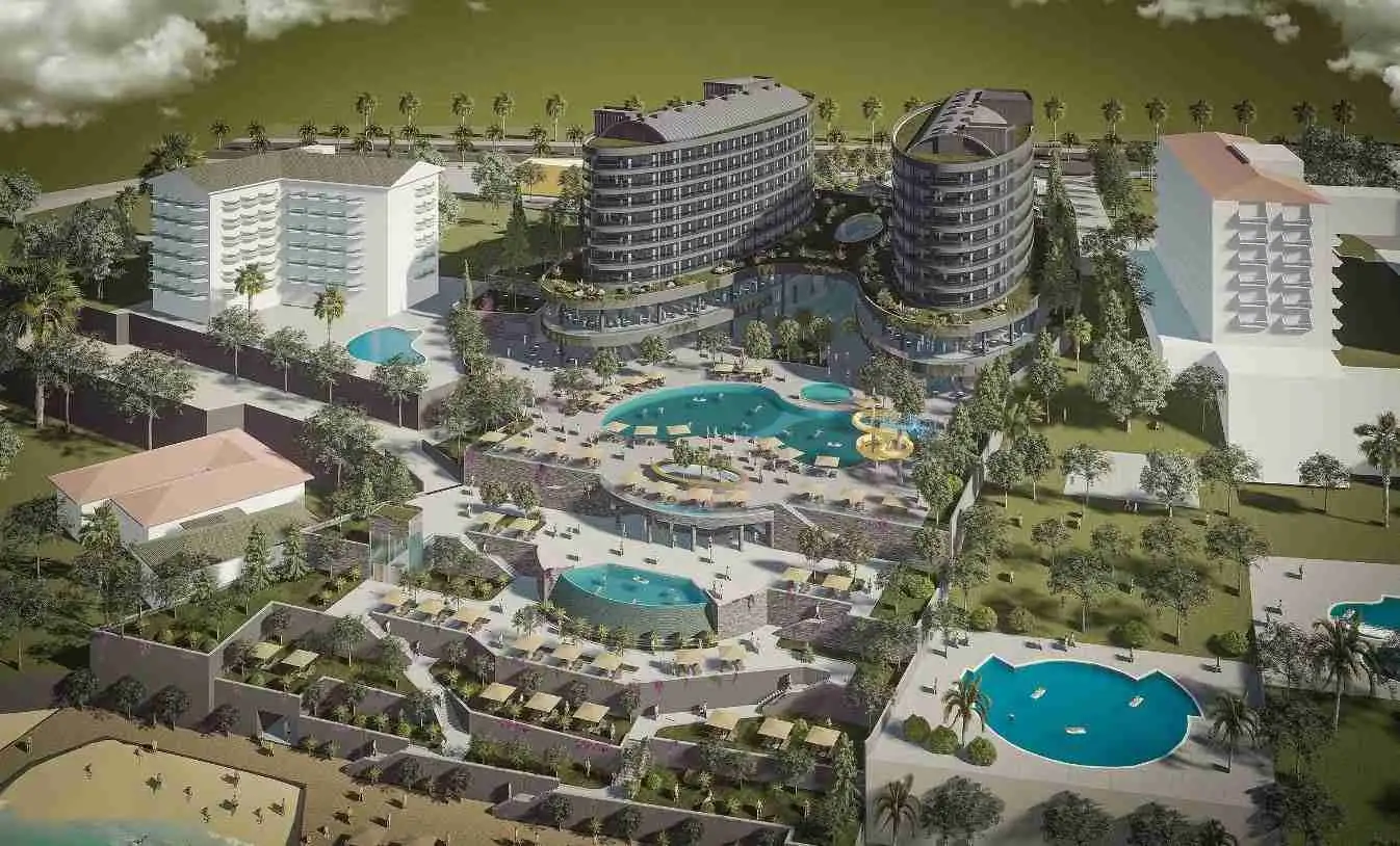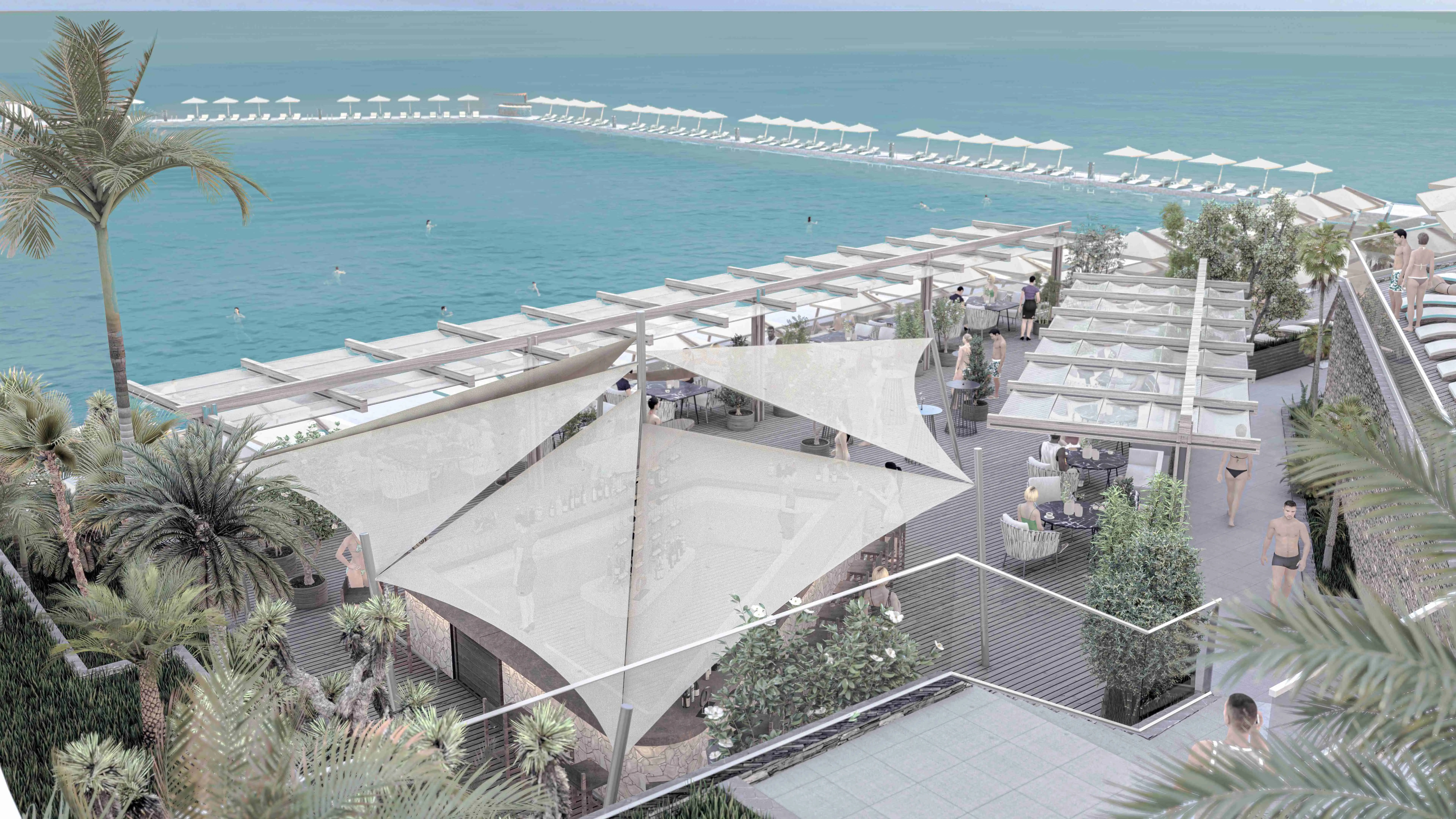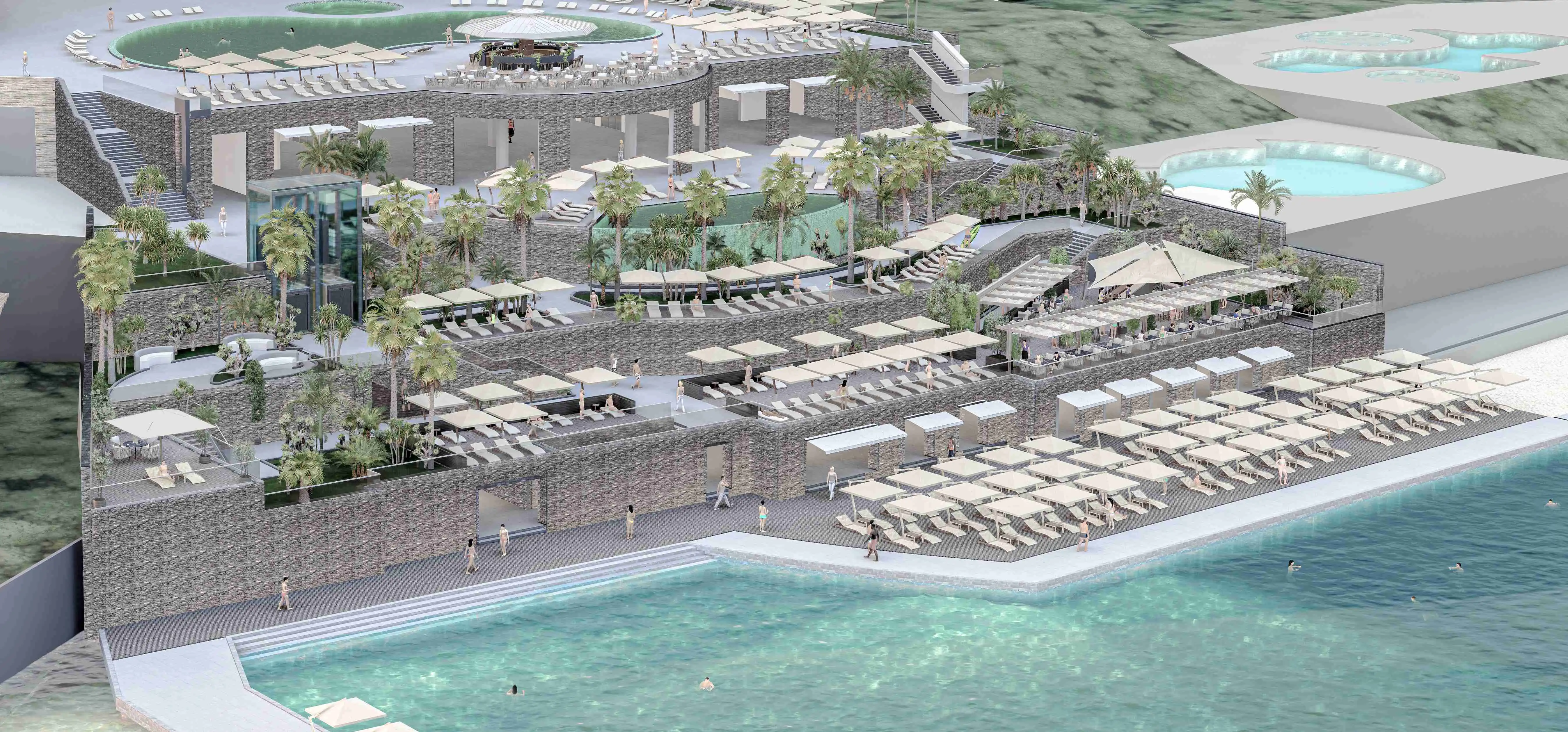 denizle iç içe bir tatil imkanı sunan tesiste, plaj ve havuz alanları gün