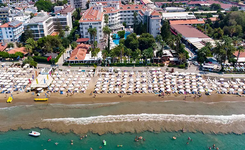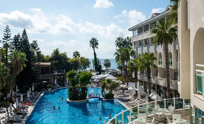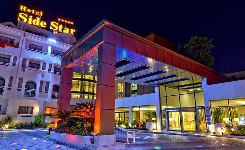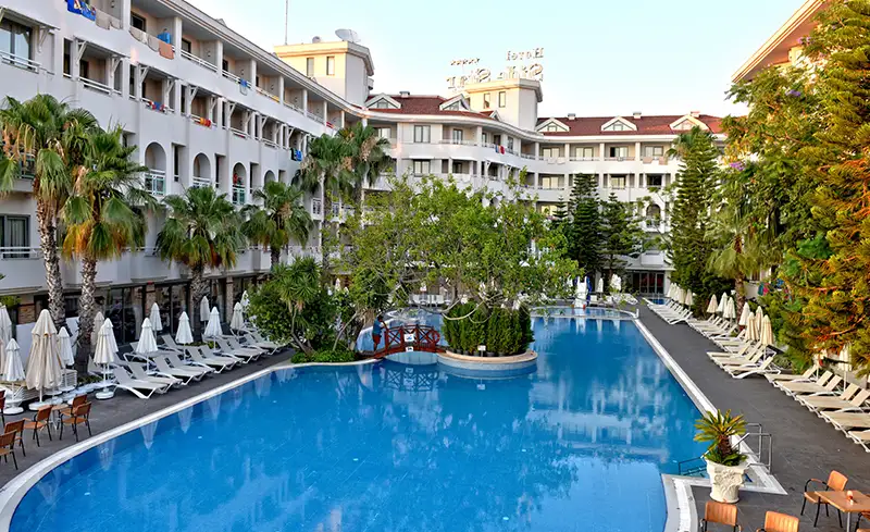 - Otel yenilenmiştir. Side’nin tarihi dokusuna yürüyüş mesafesinde yer alan otel, kum plajı, zengin açık büfesi, güler yüzlü hizmet anlayışı ve merkezi konumuyla özellikle aileler ve çiftler tarafından tercih ediliyor.