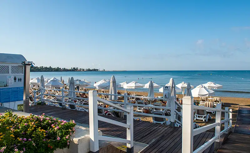 Tesisin Mavi Bayrak ile ödüllendirilmiş plajı ince kumlu ve sığdır.