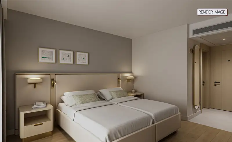 Deniz veya Kara Manzaralı olmak üzere toplam 6 adet bulunmaktadır. 29 m2’dir. Ara kapılı 2 yatak odası mevcuttur. Her gün oda temizliği yapılmaktadır. Haftada 3 kez çarşaf ve havlu değişimi yapılmaktadır.1 çift kişilik yatak mevcuttur. Maksimum 3 kişi konaklayabilir.1 adet banyo bulunmaktadır. İlave yatak verilmemektedir.