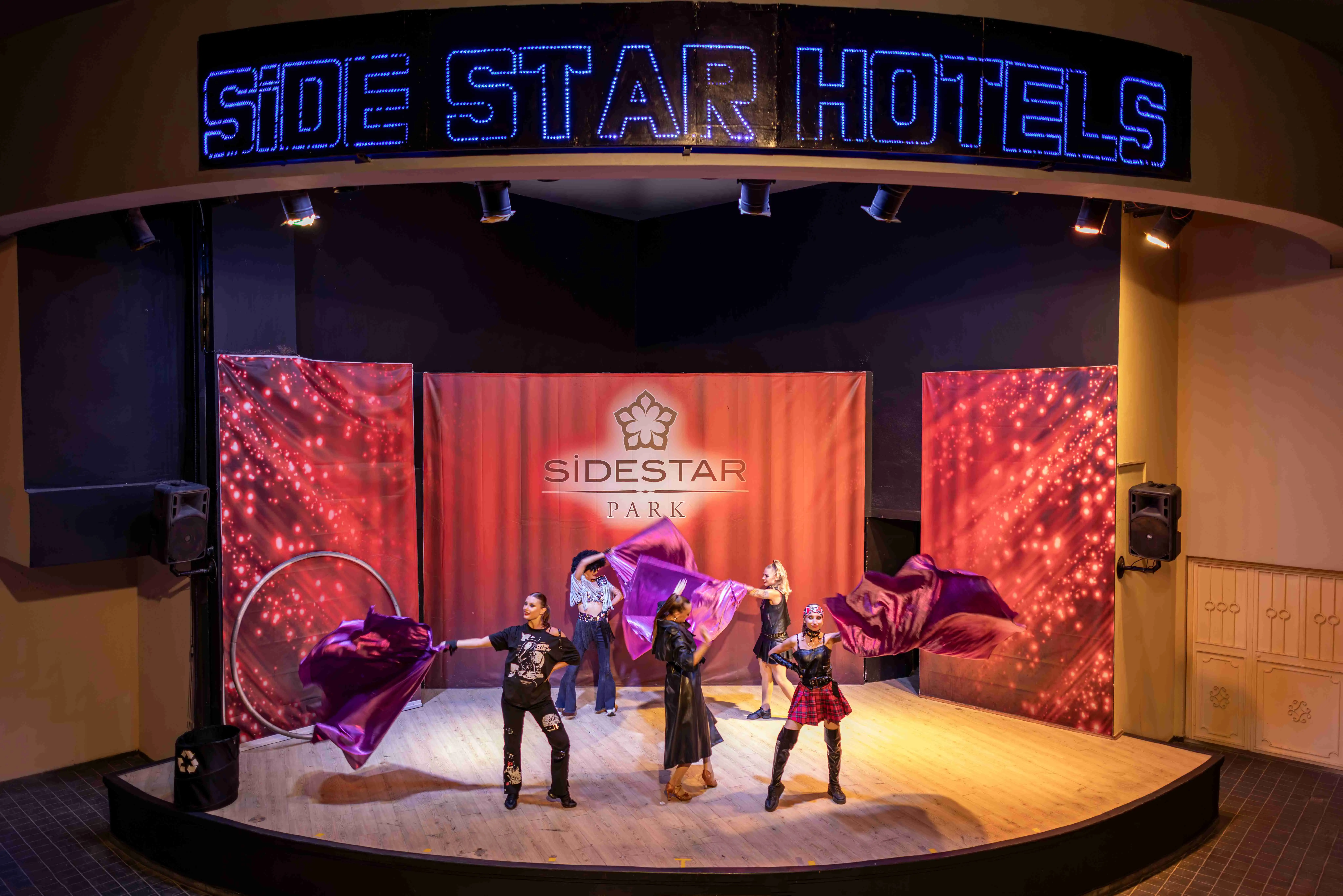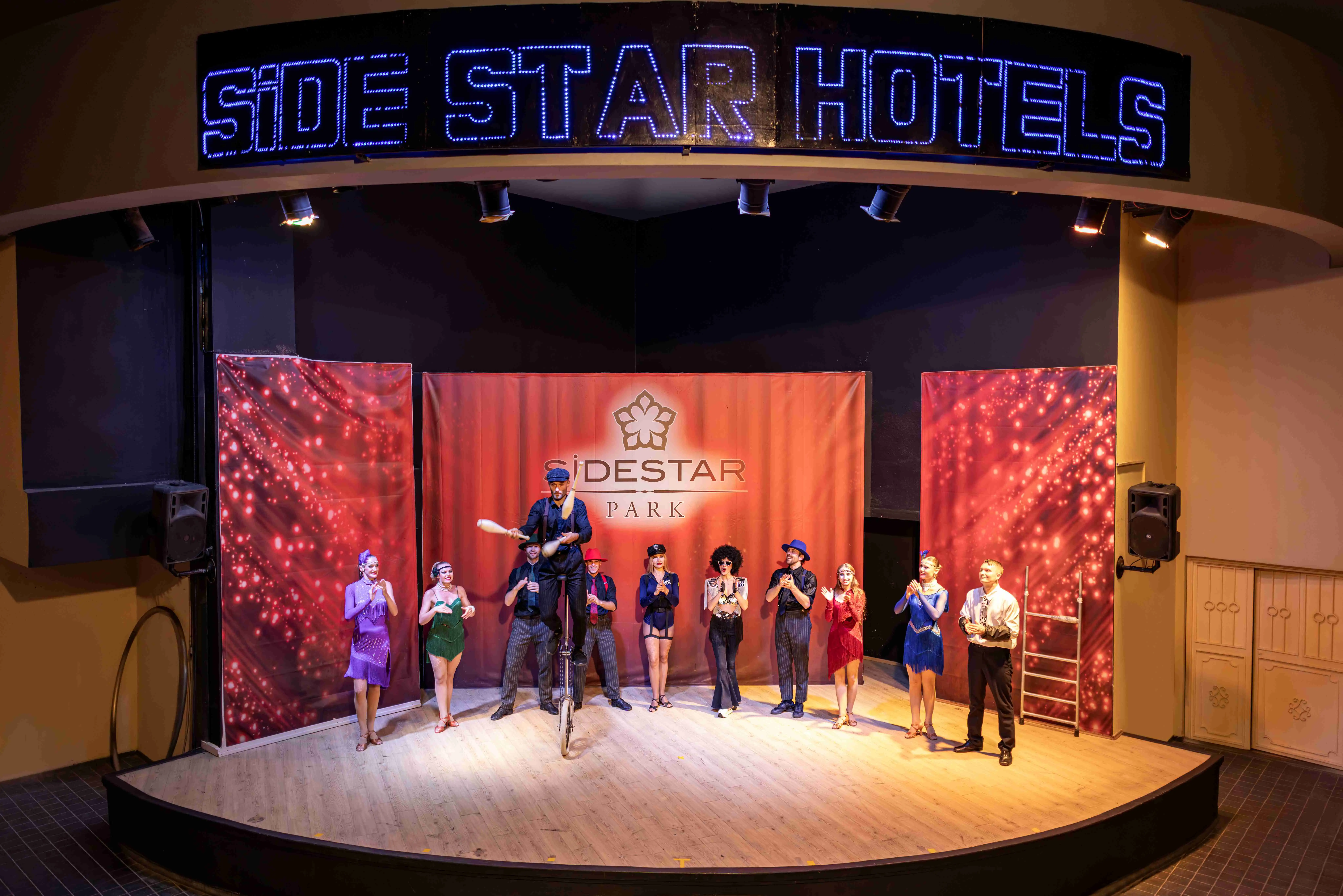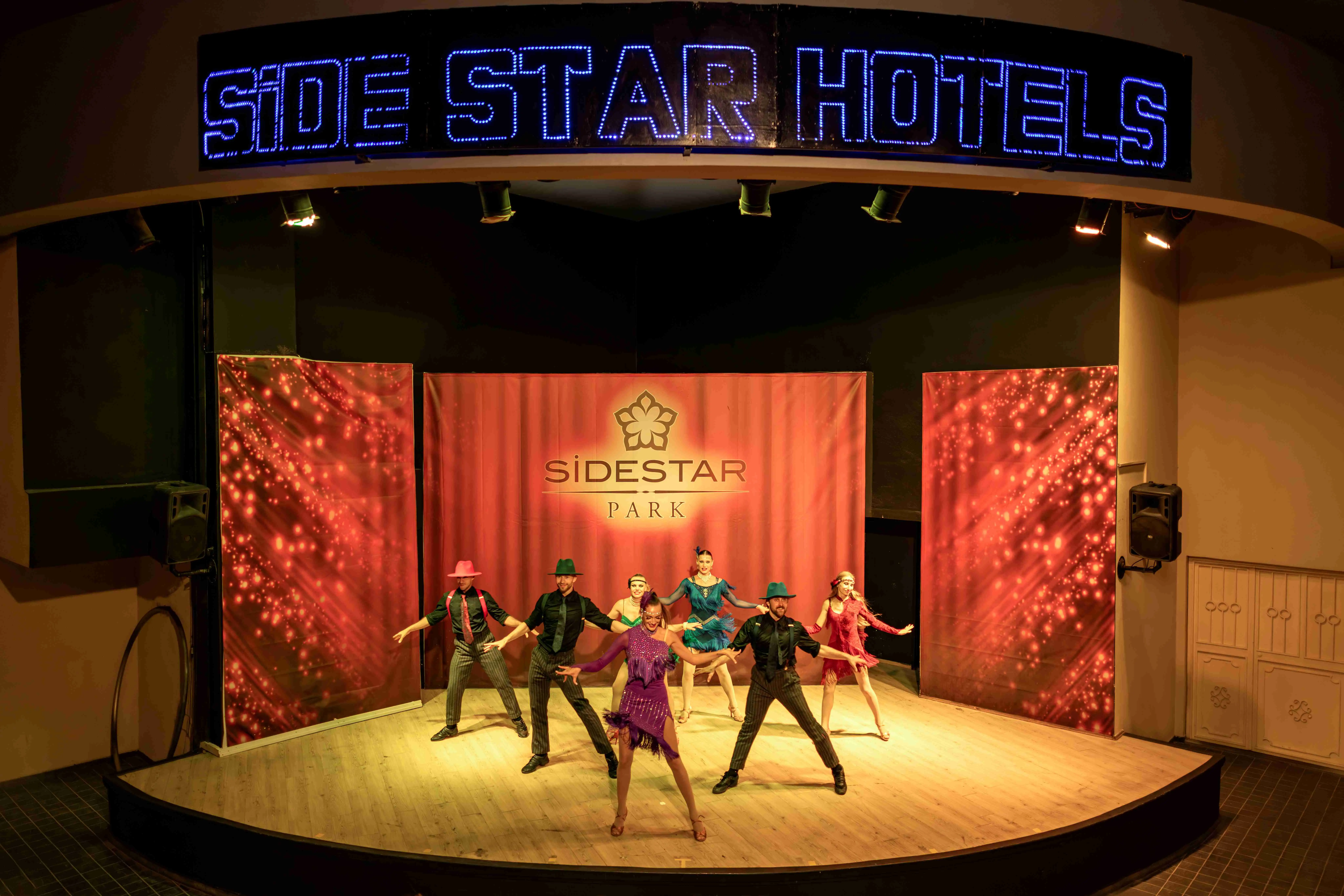 - 8314 m² alana kurulmuş olan Side Star Park, herşey dahil konseptiyle hizmet vermektedir. 3 adet ala carte restoranı bulunmaktadır. Odalarda merkezi klima/split klima, TV, telefon ve oda kasası gibi standart imkanlar mevcuttur. Spa ve masaj hizmetleriyle rahatlama imkanı sunar.