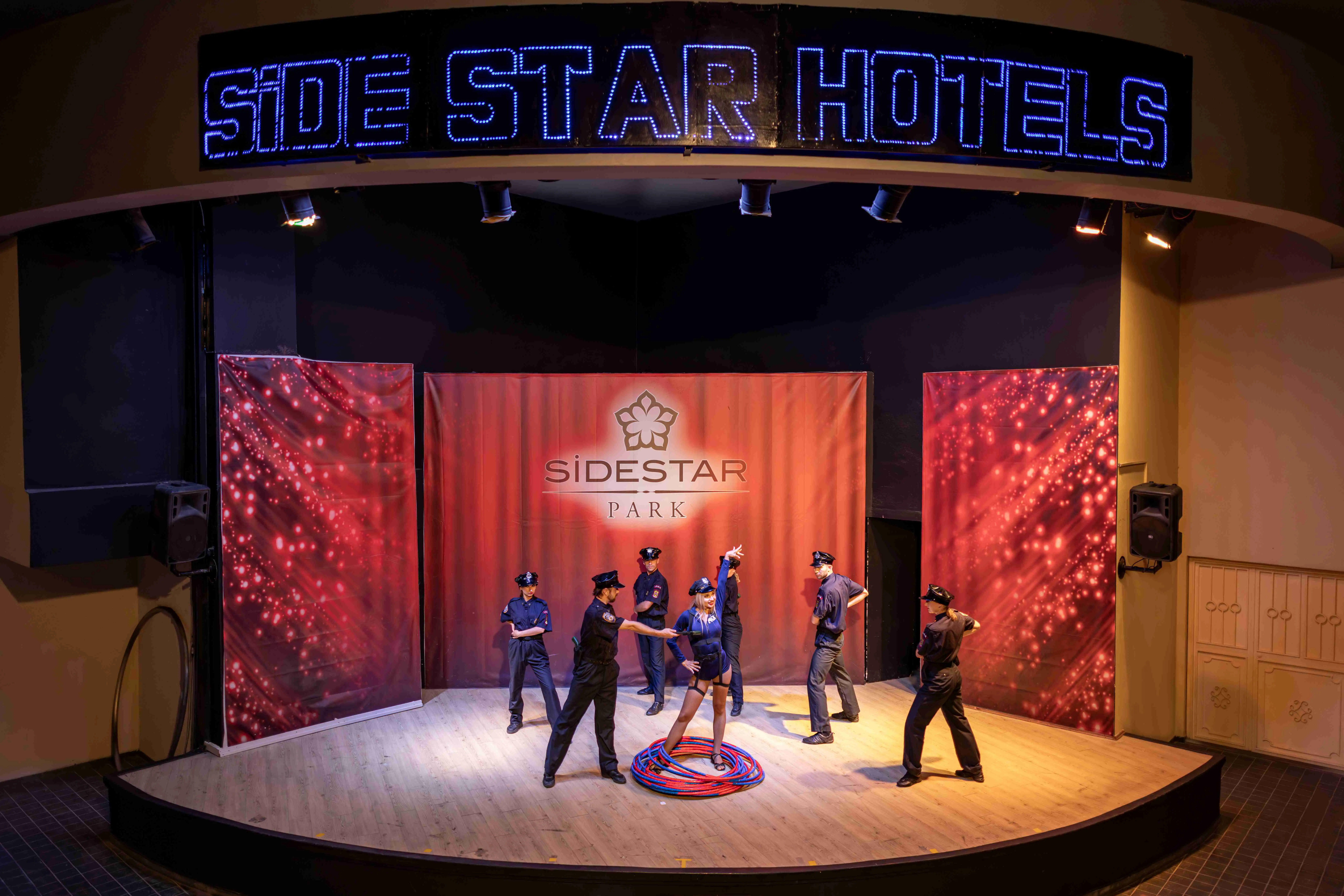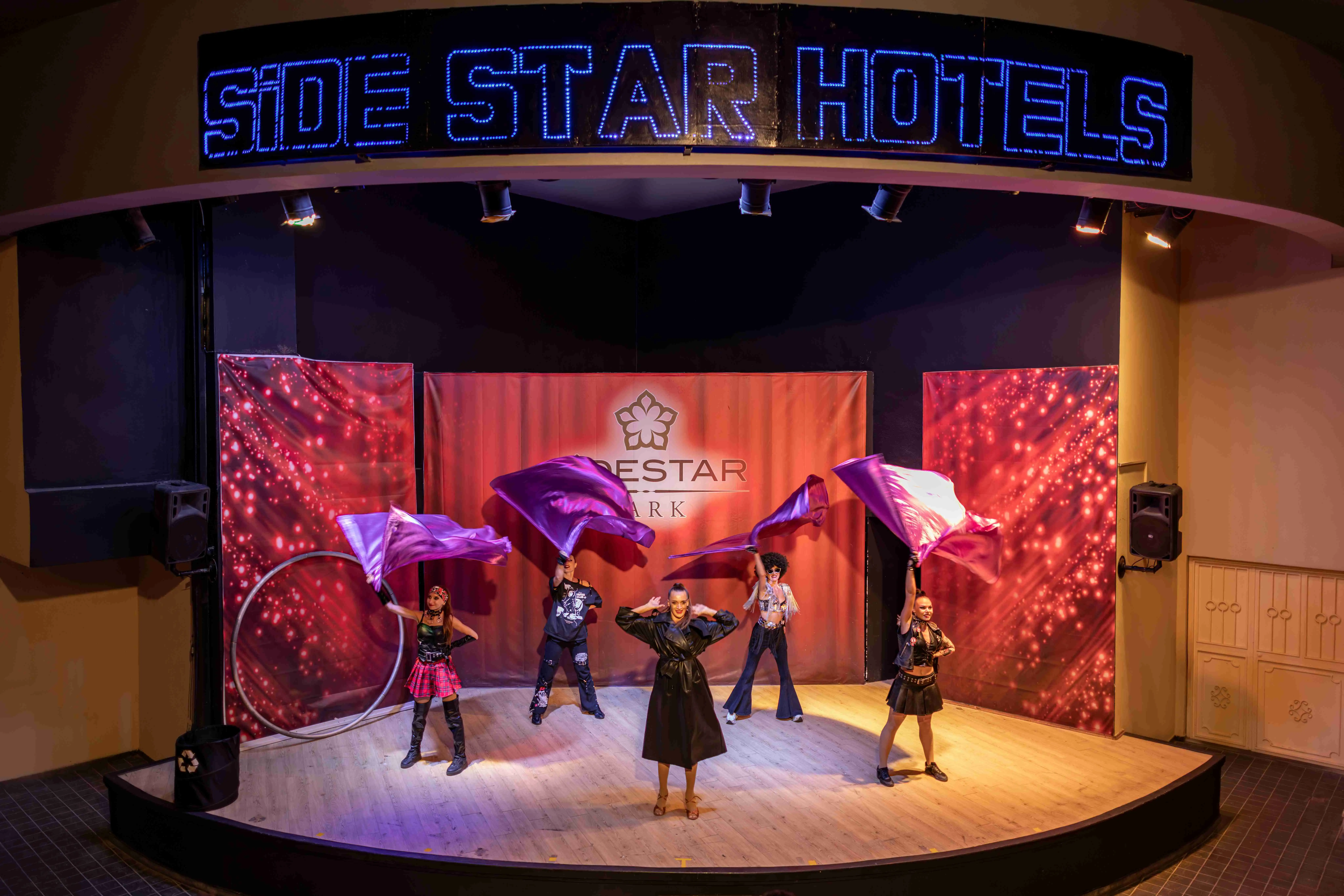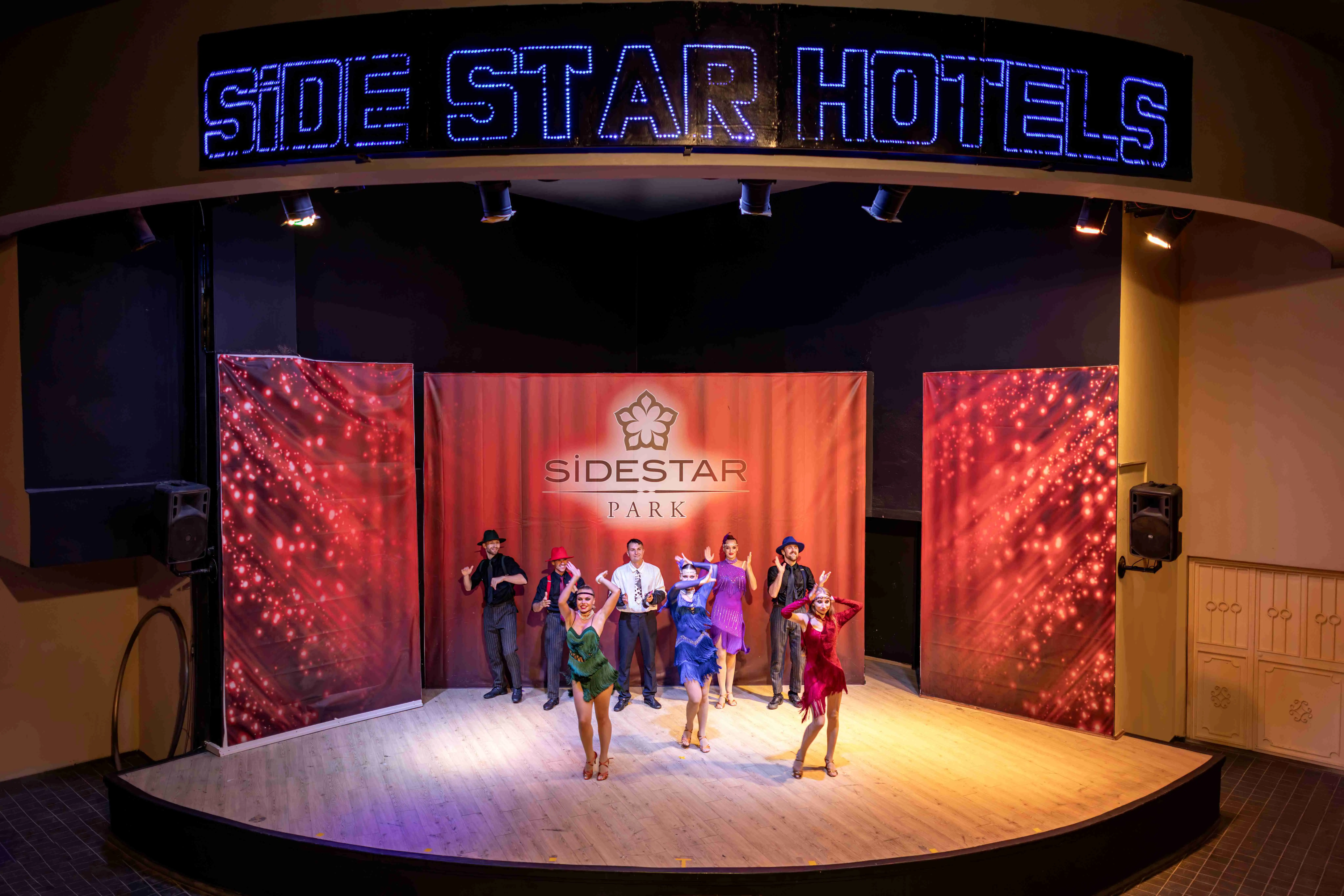 - 8314 m² alana kurulmuş olan Side Star Park, herşey dahil konseptiyle hizmet vermektedir. 3 adet ala carte restoranı bulunmaktadır. Odalarda merkezi klima/split klima, TV, telefon ve oda kasası gibi standart imkanlar mevcuttur. Spa ve masaj hizmetleriyle rahatlama imkanı sunar.