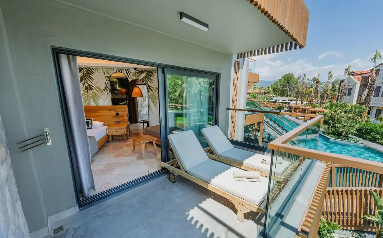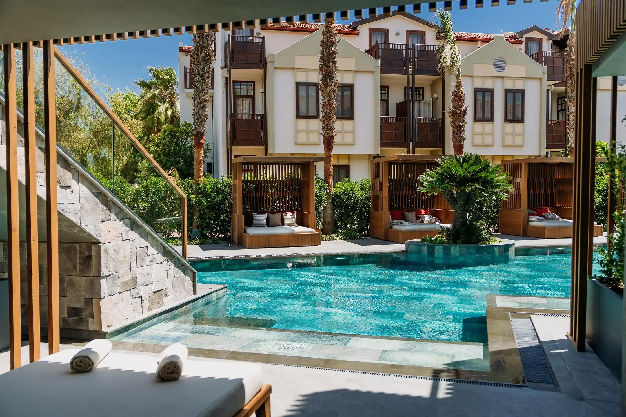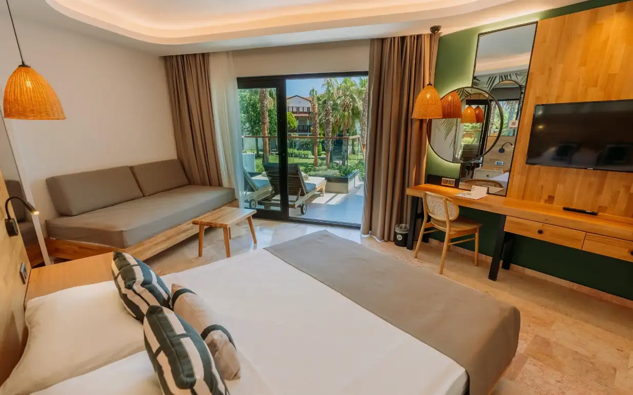 Katı Havuz Manzaralı Aile Odası Odalar 42 m² büyüklüğündedir. Odalarda