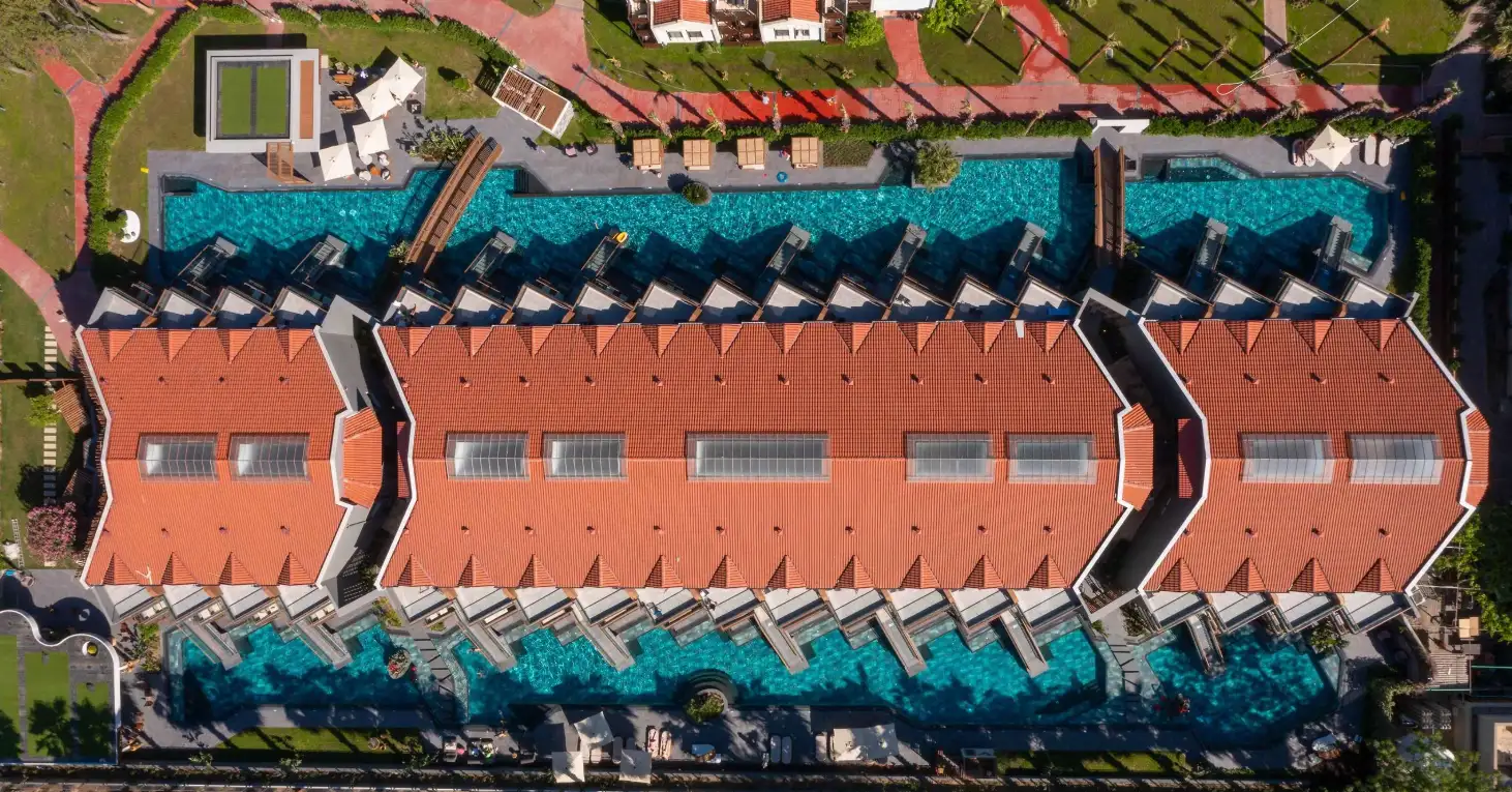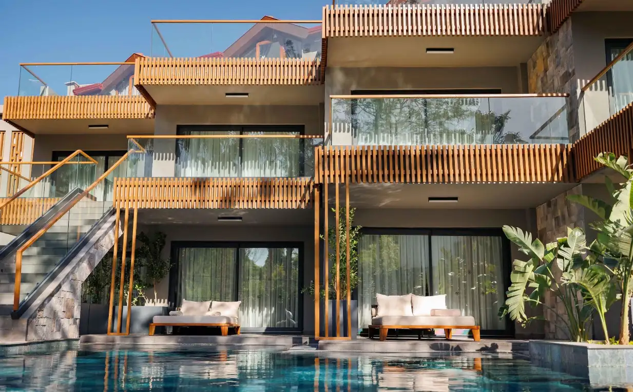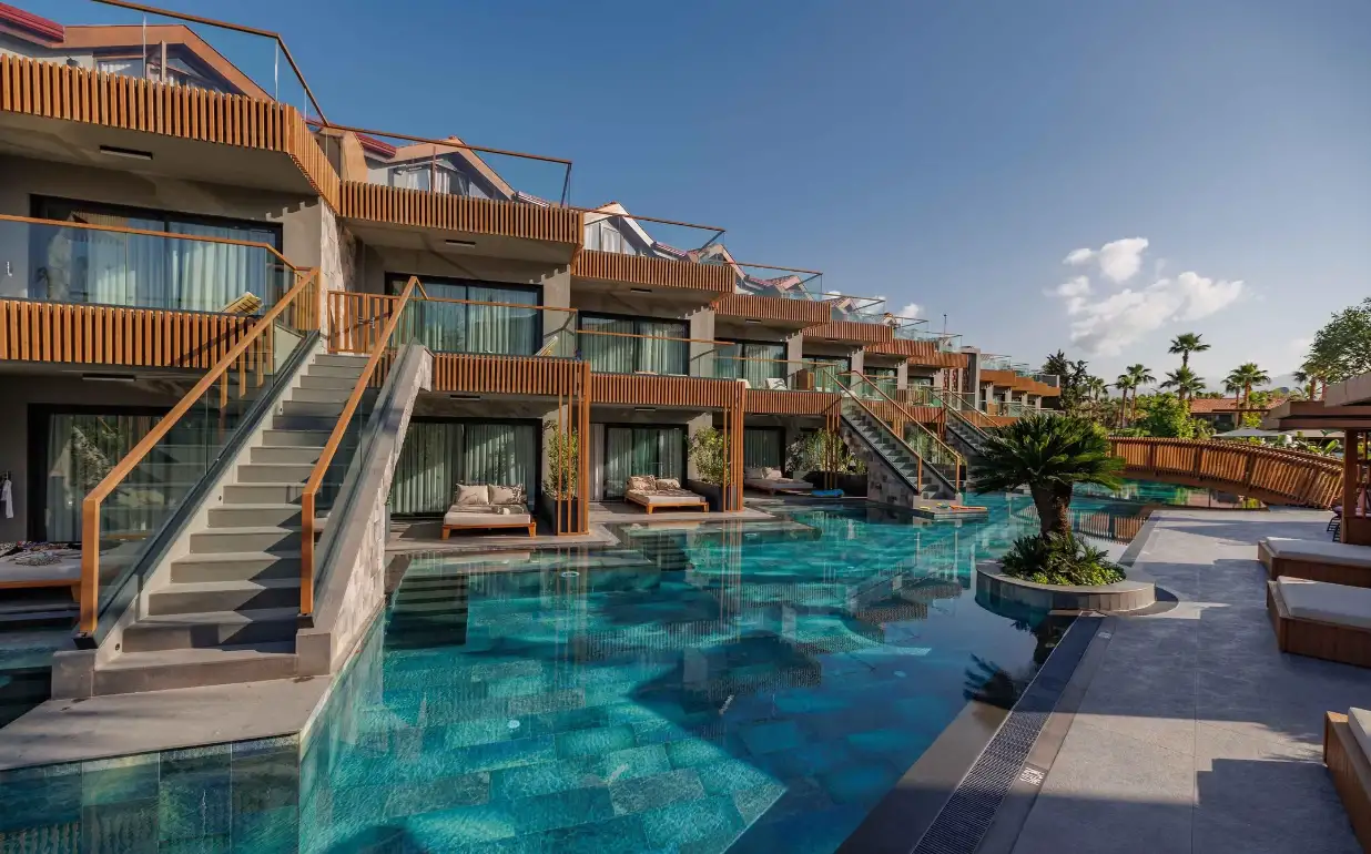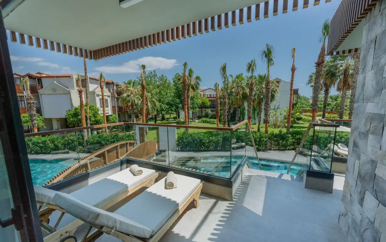 Katı Havuz Manzaralı Aile Odası Odalar 42 m² büyüklüğündedir. Odalarda