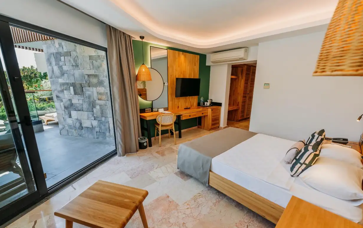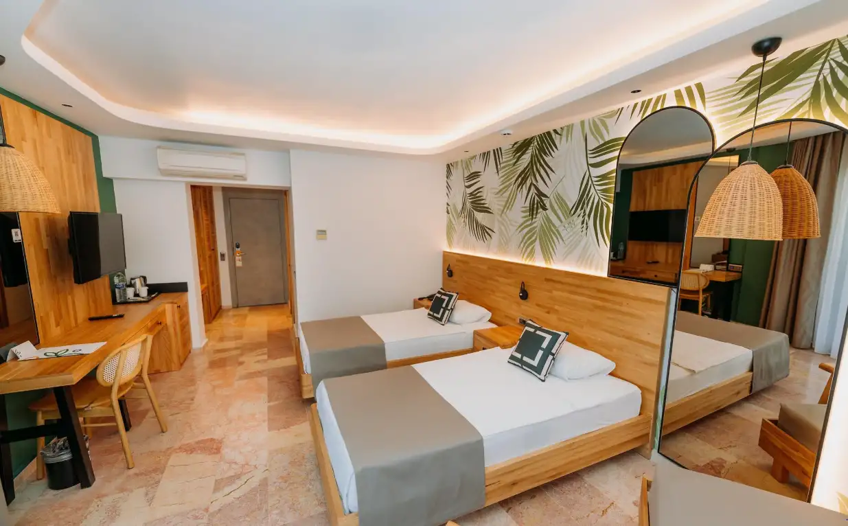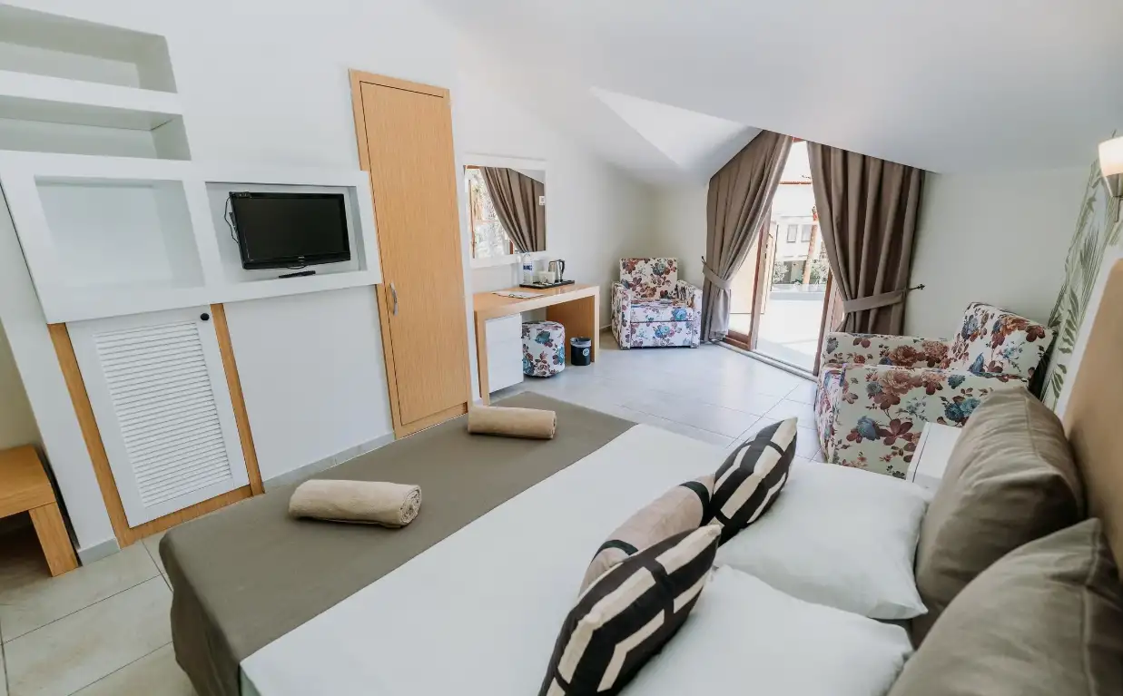 Direk Çıkışlı Oda 25 m² büyüklüğündedir. Odalarda bir adet çift kişilik