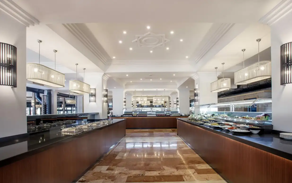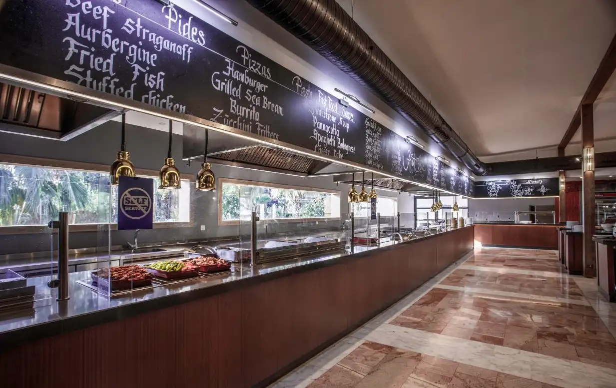 restorandaki açık büfe yemekler ücretsiz. Ayrıca, 12.30-17.00 saatleri arasında