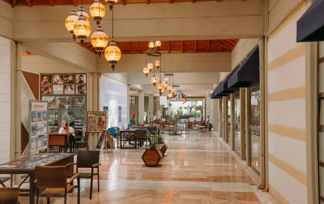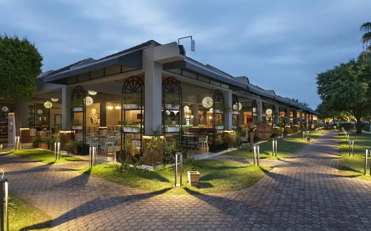 Tesiste açık hava disko, alışveriş merkezi, kuaför, fotoğrafçı, SPA merkezi,