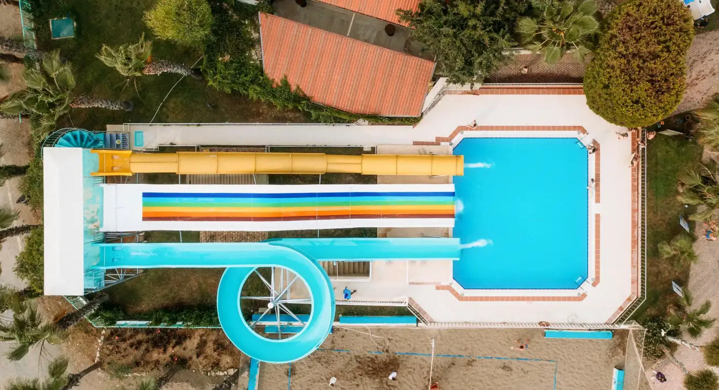 çocuk havuzu ve ayrı bir noktada 3 bantlı kaydırak havuzu bulunuyor. Tesiste