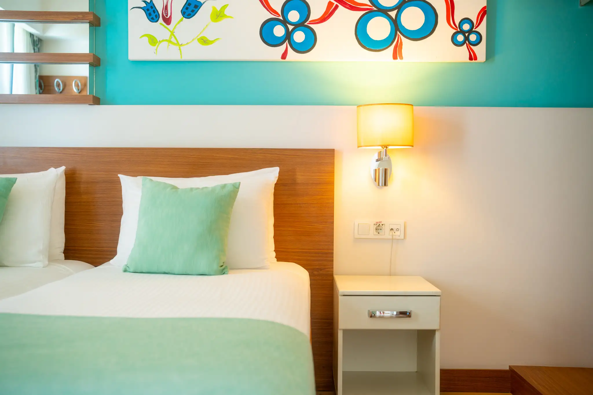 - Her Şey Dahil konaklamalarda, sabah, öğle ve akşam açık büfe yemekler ücretsizdir. Belirlenmiş markalar dahilinde bazı yerli alkollü ve alkolsüz içecekler 10.00-23.00 saatleri arasında ücretsizdir. Külah dondurma ve Türk kahvesi belirli saatlerde ücretsizdir. Taze sıkılmış meyve suları ve kokteyller ücretlidir. La Sera A la Carte Restoran (İtalyan mutfağı) haftanın 6 günü hizmet verir ve rezervasyonlu olarak ücretlidir. Good Mood Bistro International A la Carte, 7 gece ve üzeri konaklamalarda 1 kez rezervasyonlu ve ücretsizdir. Minibara sadece giriş günü şişe su ücretsiz olarak konulur.