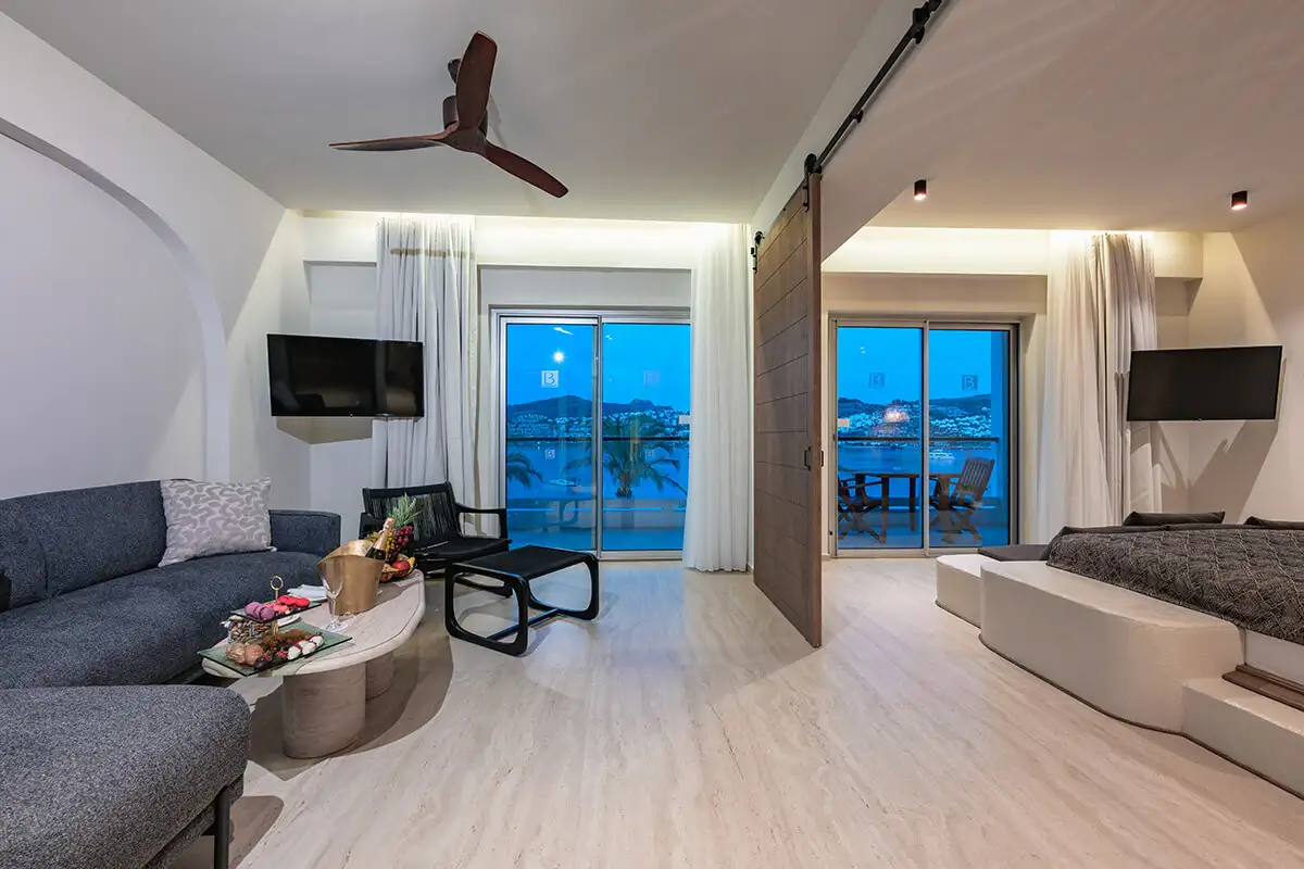 Minimalist tarzda dekore edilmiş bir yatak odası ve bir oturma odasından oluşan Süit odalarımız 60 m²’dir. 1-3 kişilik konaklamalar için uygun ve konforludur.