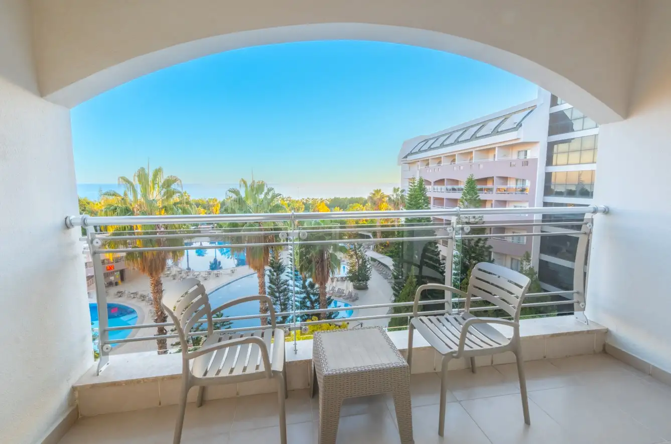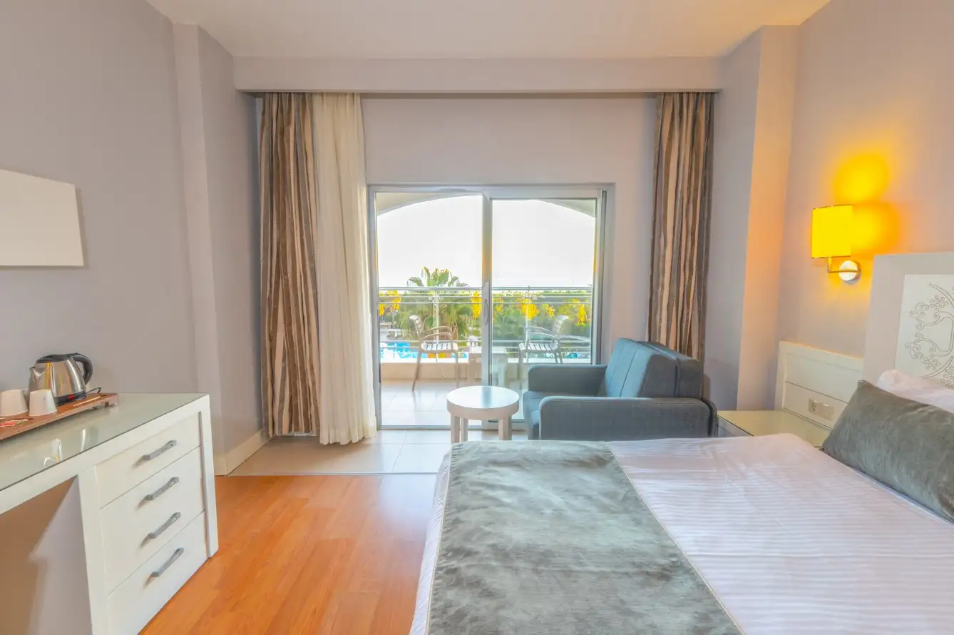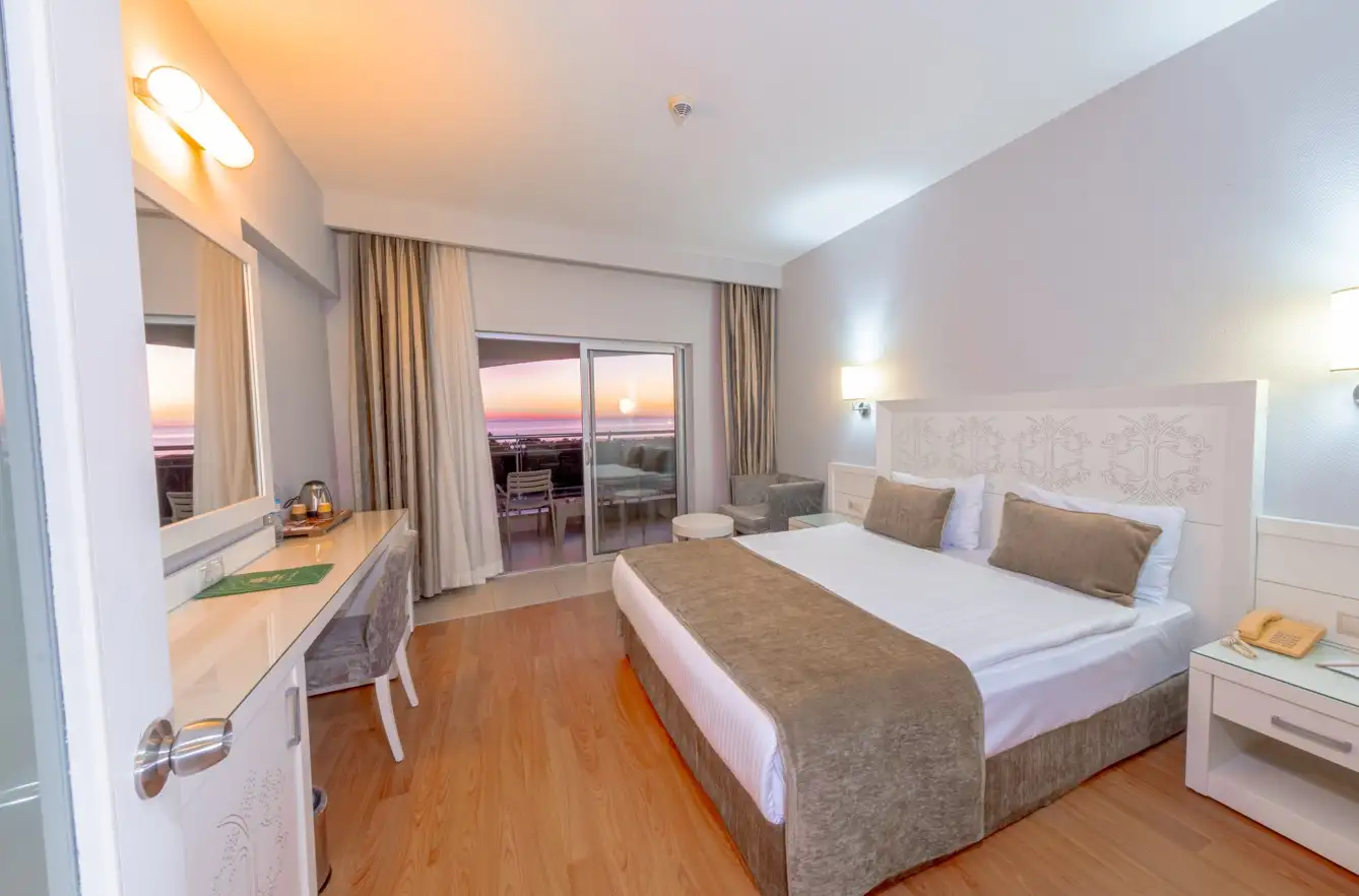- Standart Kara Manzaralı Oda: 35 m2. Çift kişilik ve tek kişilik yatak, merkezi klima (belirli saatlerde), uydu TV yayını, TV'den müzik yayını, direkt telefon, banyoda telefon, minibar, WC, saç kurutma makinesi, dijital kasa, balkon bulunmaktadır.